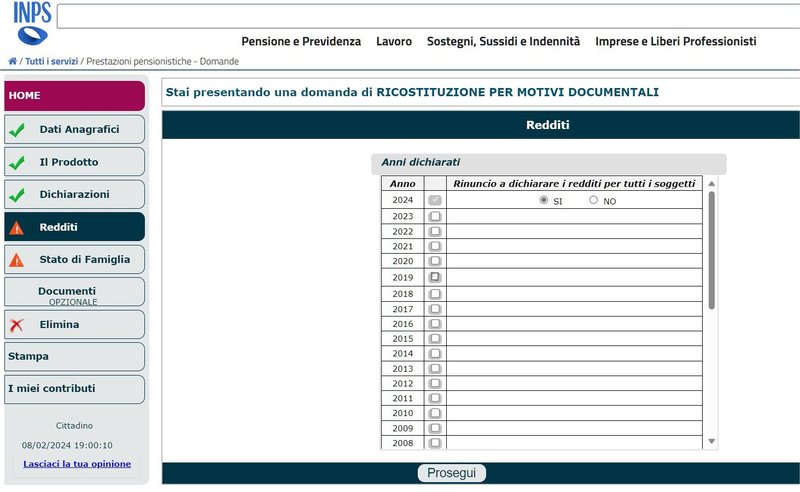 il pannello redditi è previsto perchè viene utilizzata anche per assegno di famiglia, per il quale i redditi sono necessari, ma c'è la possibilità di fleggare "rinuncio etc etc e ti fa andare avanti