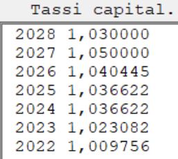 Un'altra domanda: ho inserito il nuovo tasso di capitalizzazione in Carpe (1,040445) ma ho notato che duplica quello del 2024 nel 2025 (allego immagine per rendere l'idea) e non ho capito se è un limite di Carpe oppure un mio problema di configurazione o di visualizzazione. Sapreste essermi d'aiuto?