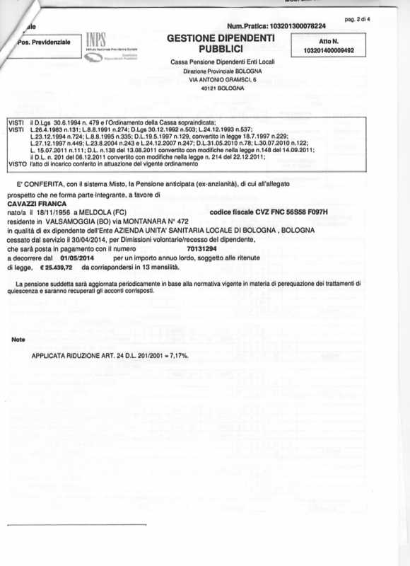 a seguito richieste alego documenti da me a titolo personale inviati all'inps di Bologna per chieder il ricalcolo della pensione.
