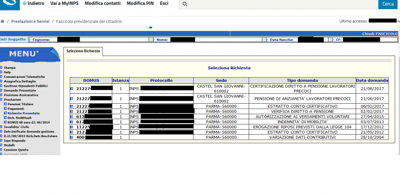 dal proprio Myinpsvai su Fascicolo previdenziale del cittadino, poi