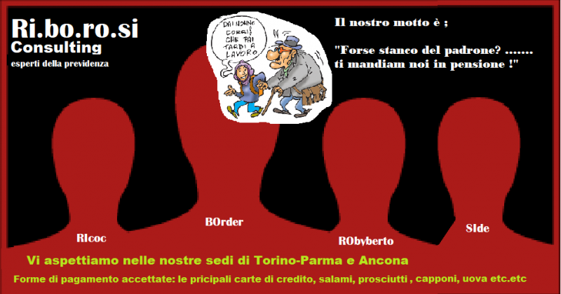 Ps nel servizio è compreso anche l'affiancamento del malcapitato aspirante pensionato agli incontri nelle sedi Inps, se ne occuperà direttamente il Dott. Ricoc,coadiuvato dalla sua fida mazza da baseball...