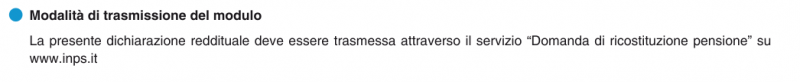 Buongiorno a te Betto, credo che il modulo in questione vada compilato ed inviato in modalità telematica tramite accesso con PIN nell’area Servizi on line: “Domanda di ricostituzione di pensione”.