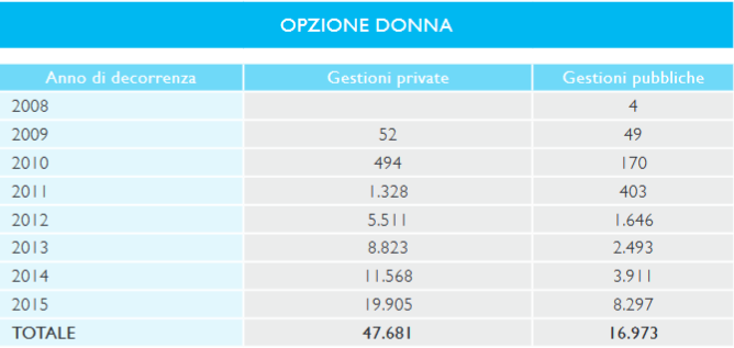 Secondo il rapporto dell'Inps sono le più giovani, e dunque quelle più distanti dal raggiungimento dell’età pensionabile, che presentano una maggiore propensione a scegliere questo canale di uscita: oltre il 66% delle optanti ha tra i 58 e i 59 anni di età. Complessivamente, però, anche per l’anno di picco solo il 20% circa delle donne che avrebbero potuto esercitare l’opzione lo ha fatto.